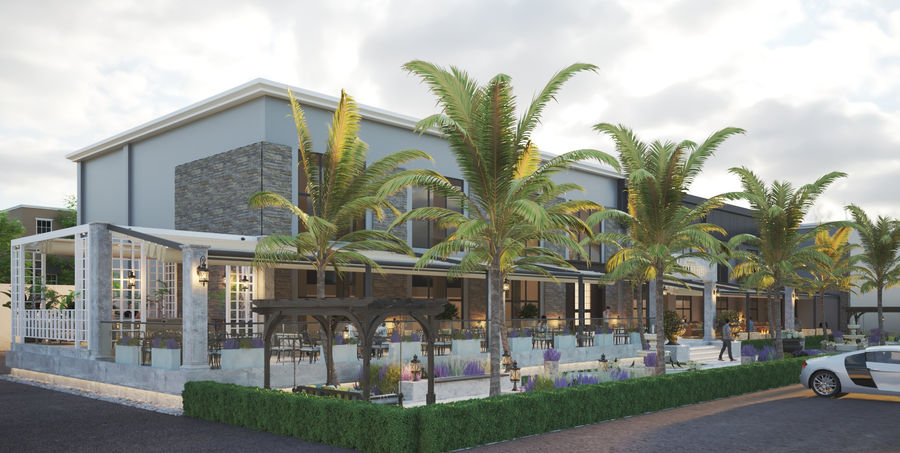 Proje: Mevcut otele bağlı restoran ve etkinlik salonunun dış mekan çözümlenmesi ve konsept tasarımı yapıldı.
